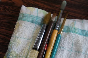 ① 色をぬるときは、筆を使い分けます。